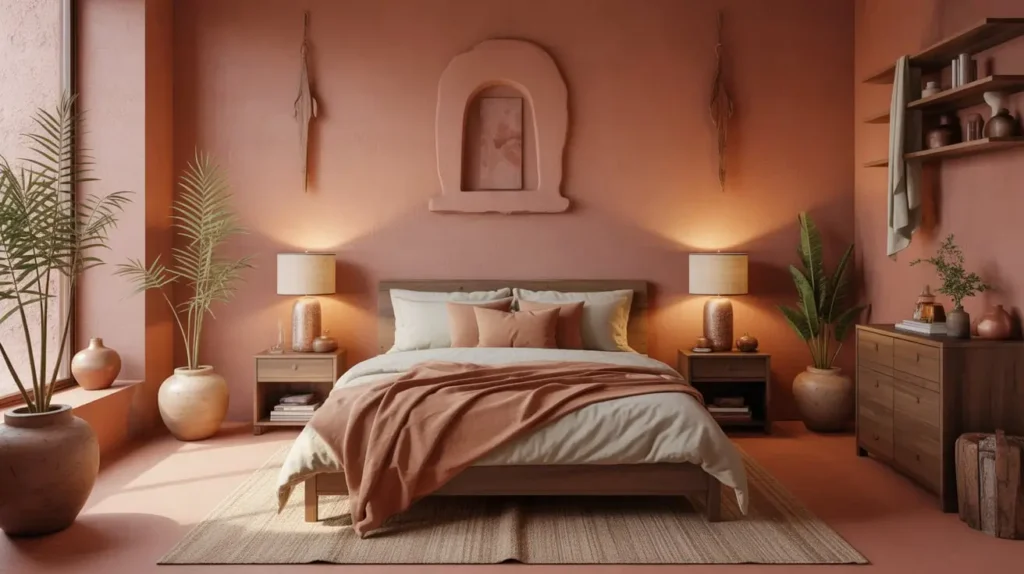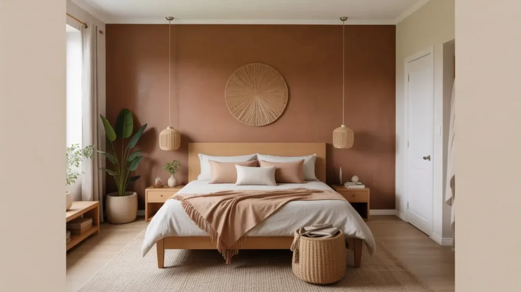 The mistake I see people make? Going all-in with terracotta everywhere. You’ll end up feeling like you’re sleeping inside a flower pot :/ Use it as an accent color that warms up your neutral base, and you’ll nail the look.
