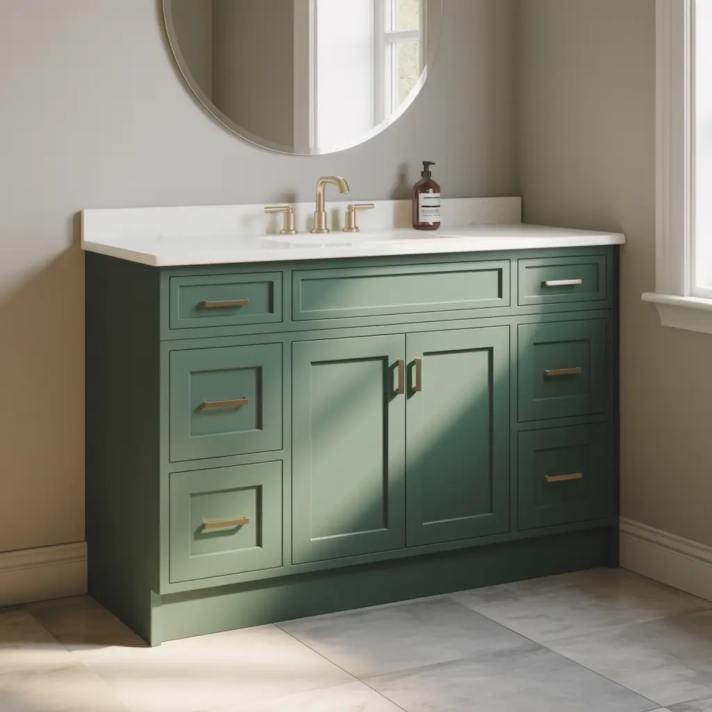 Forest Green Vanity with Brass Hardware