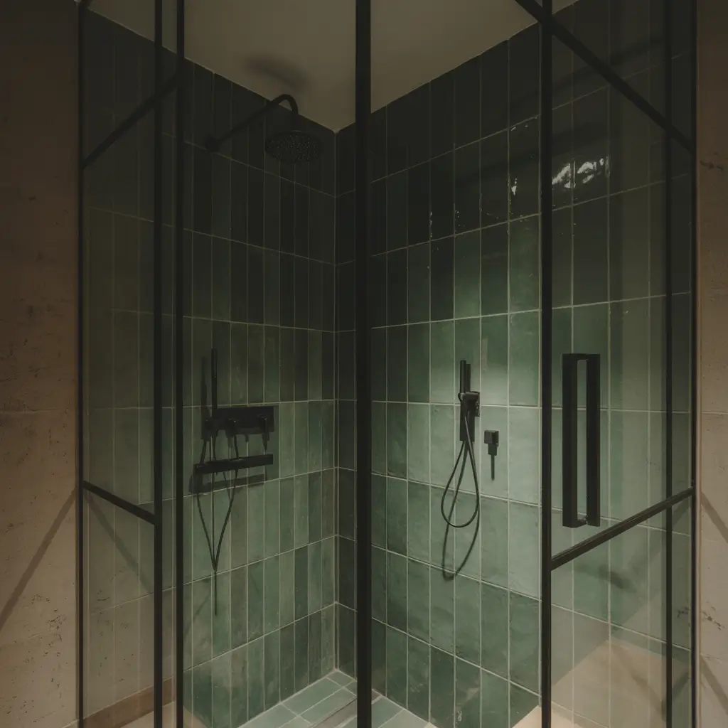 Pair your forest green shower with chrome or brushed nickel fixtures. The cool-toned metals contrast beautifully with the warm undertones in forest green. And please, please invest in proper ventilation. Dark tiles show water spots and soap scum like nobody’s business.