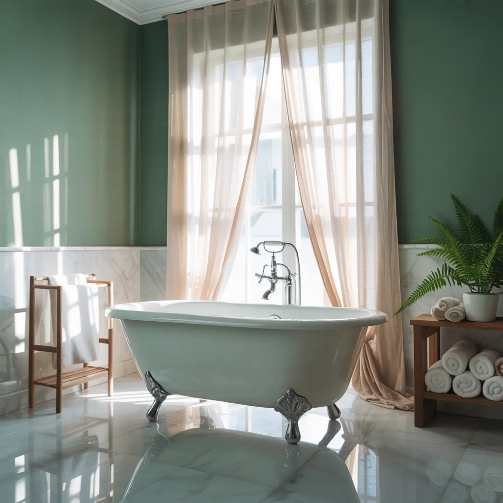 Nothing says “spa bathroom” quite like the crisp combination of forest green and white. This pairing feels fresh, clean, and utterly sophisticated.