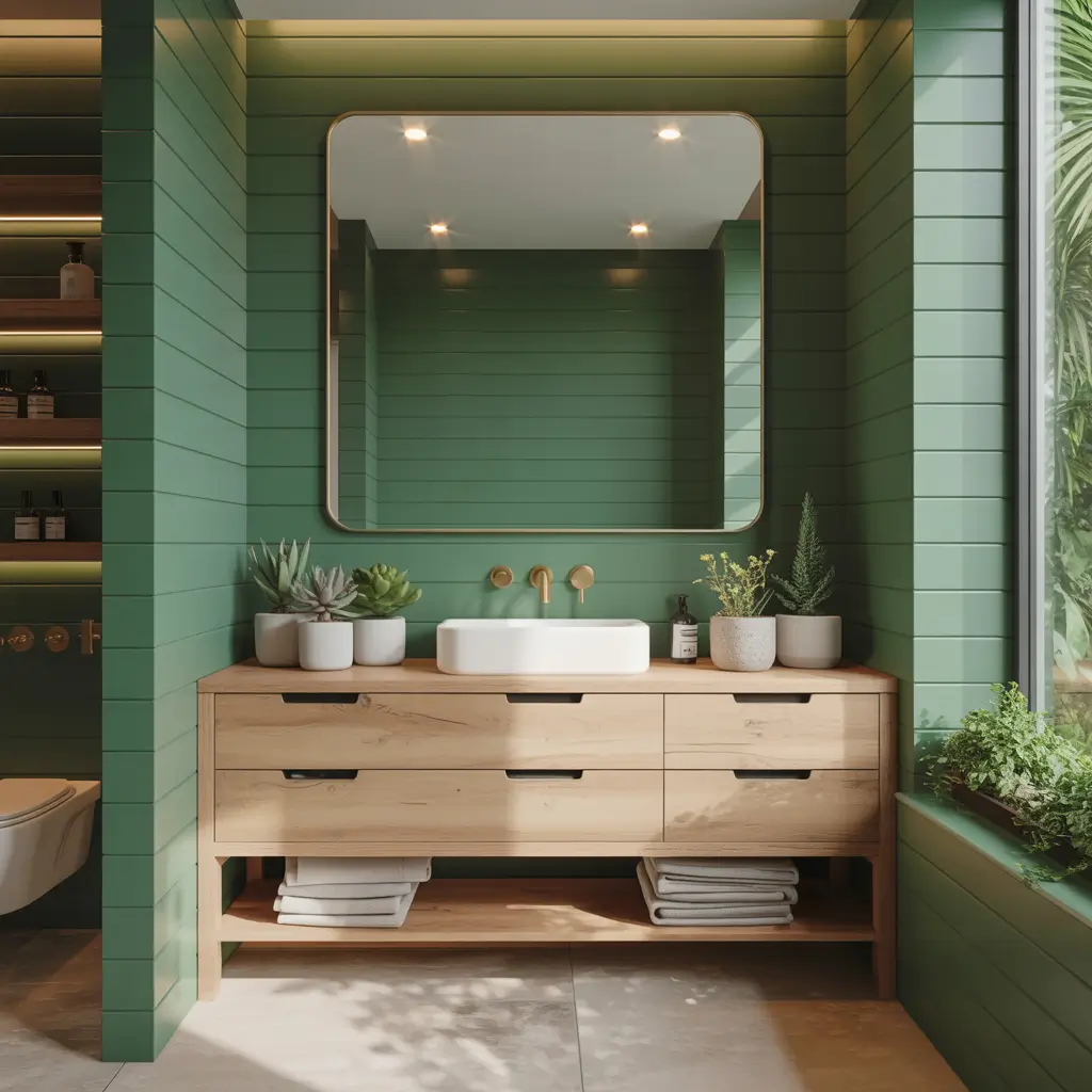 Forest Green Bathroom with Natural Wood
