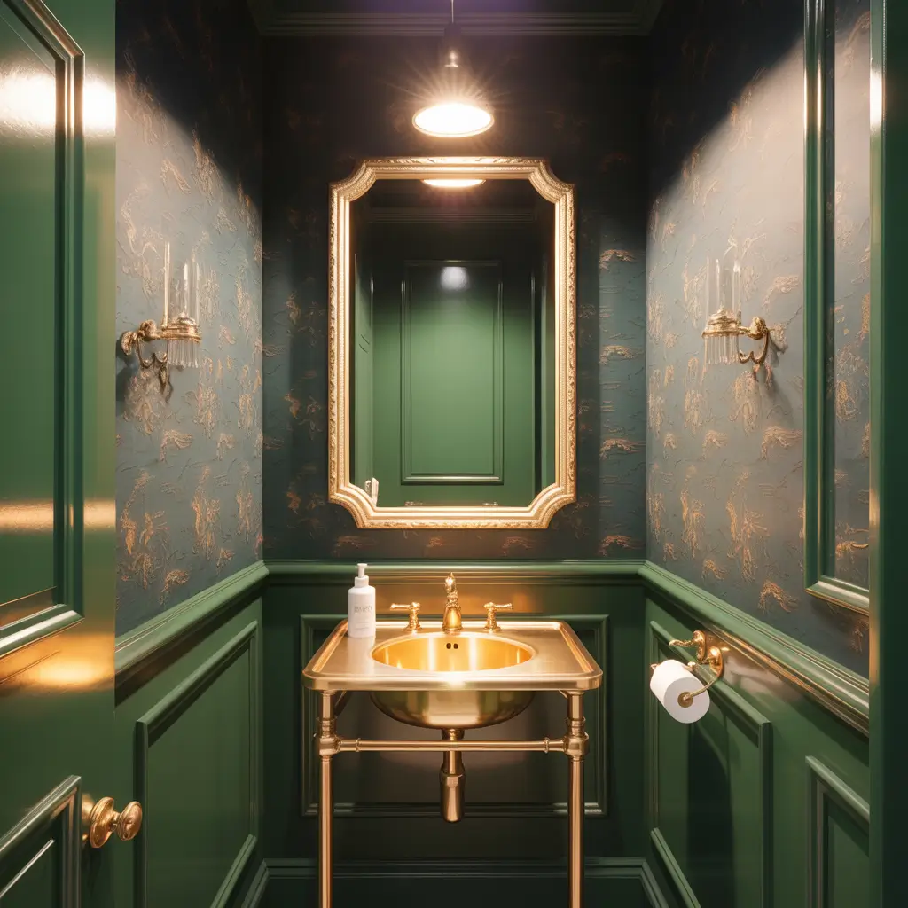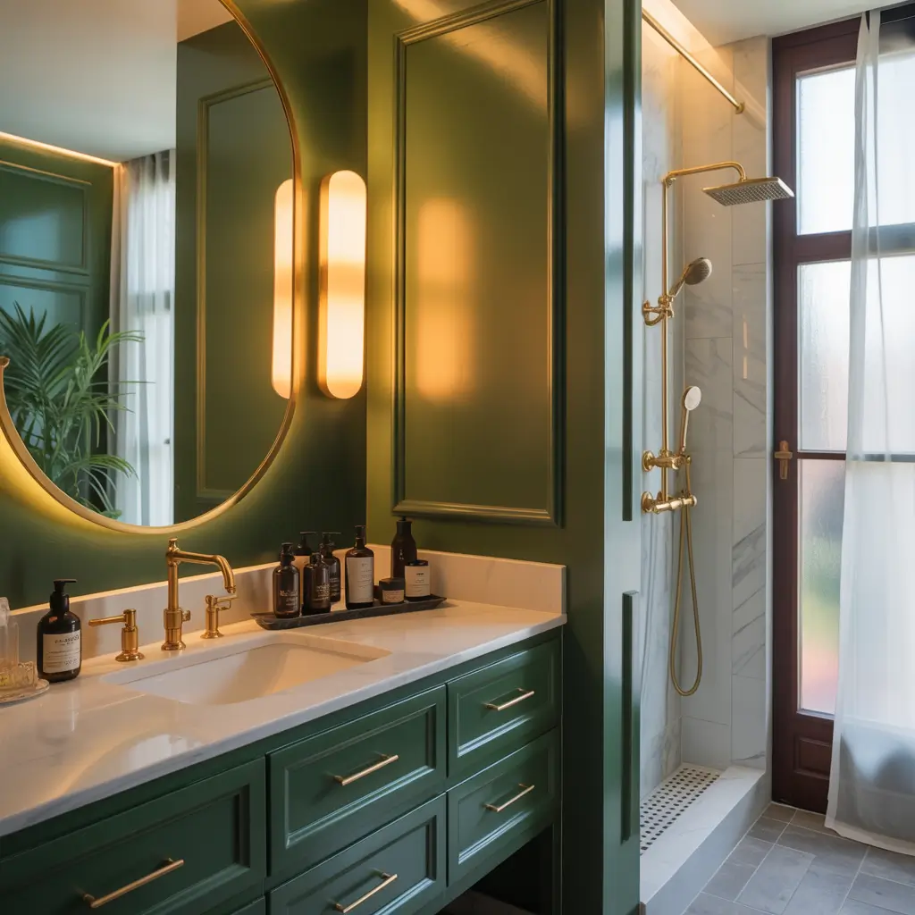 If brass feels too subtle and chrome too boring, let me introduce you to gold fixtures with forest green. This combination screams luxury louder than a designer handbag.
