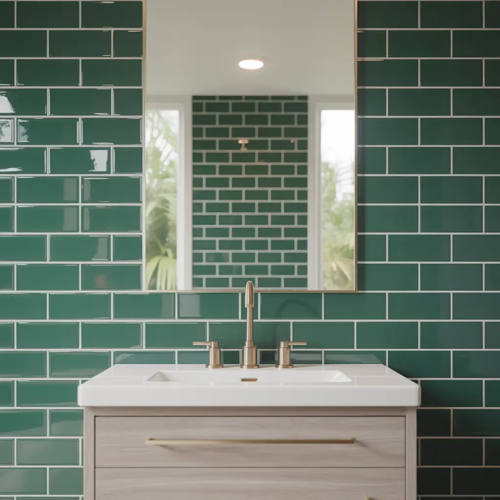 • Forest green accent wall or tiles for color without overwhelm