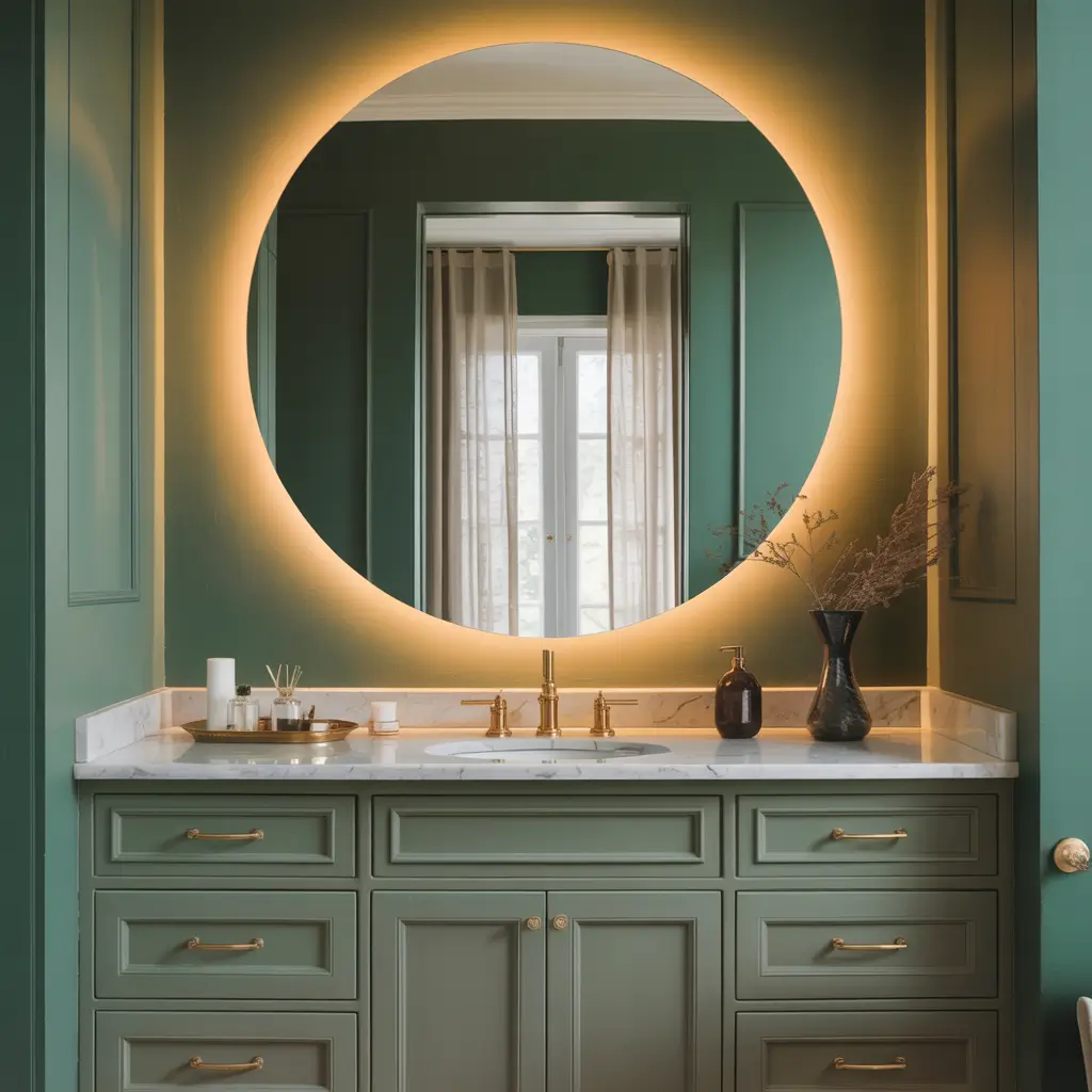 Forest Green Bathroom with Statement Mirror