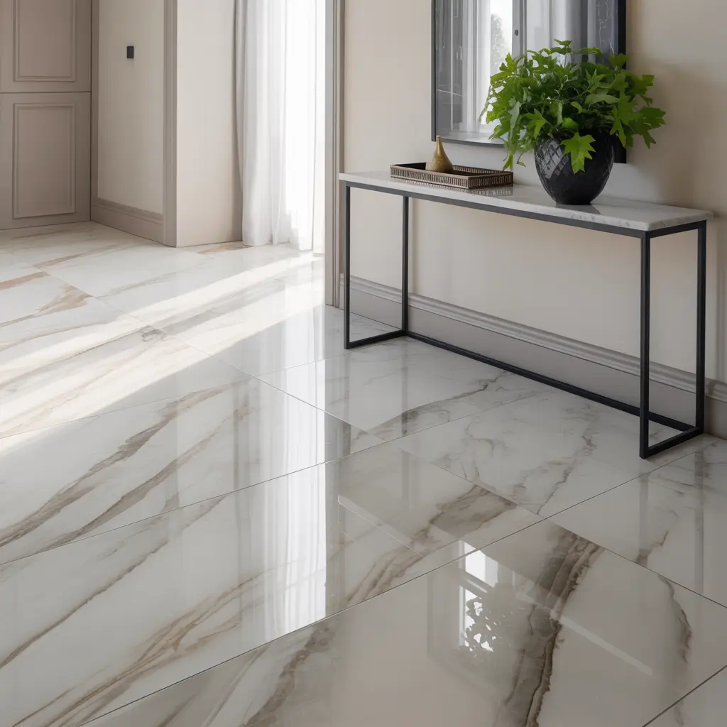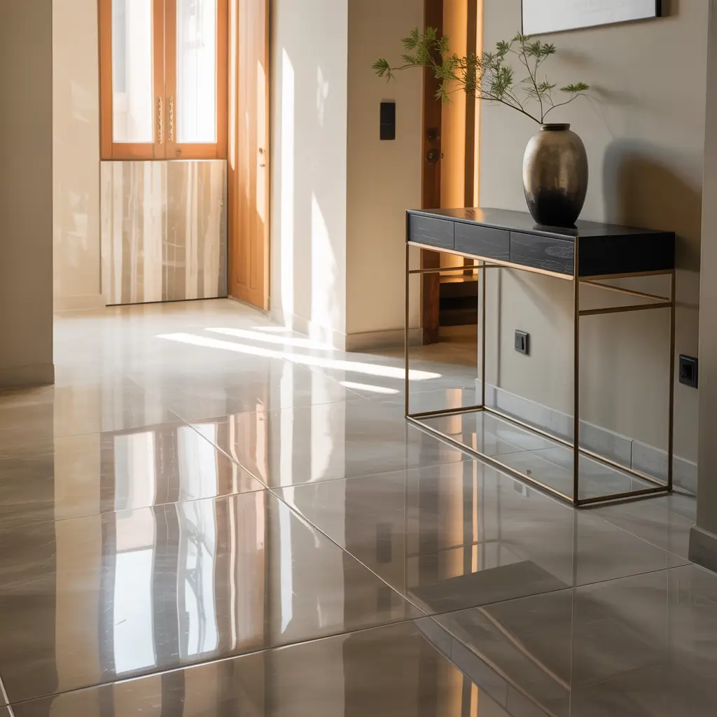 Want your foyer to feel like a contemporary art gallery? High gloss tiles reflect light beautifully, creating spaces that feel bright, clean, and undeniably modern. These mirror-like surfaces amplify both natural and artificial light, making even small entryways feel open and airy.