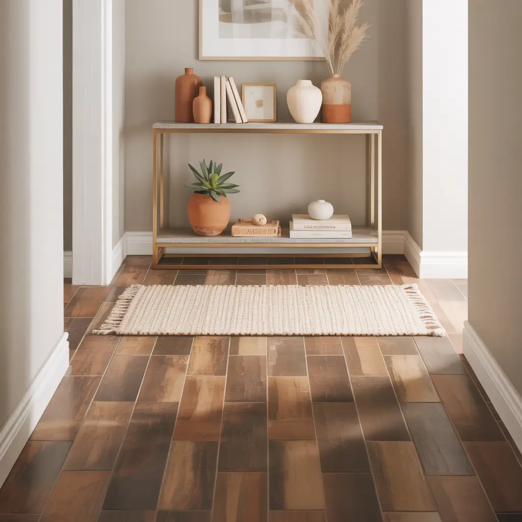 Here’s where practicality meets aesthetic perfection. Wood-look porcelain tiles give you that warm, inviting hardwood appearance while laughing in the face of moisture, mud, and whatever else your entryway throws at them. ๐