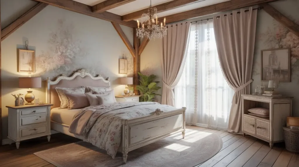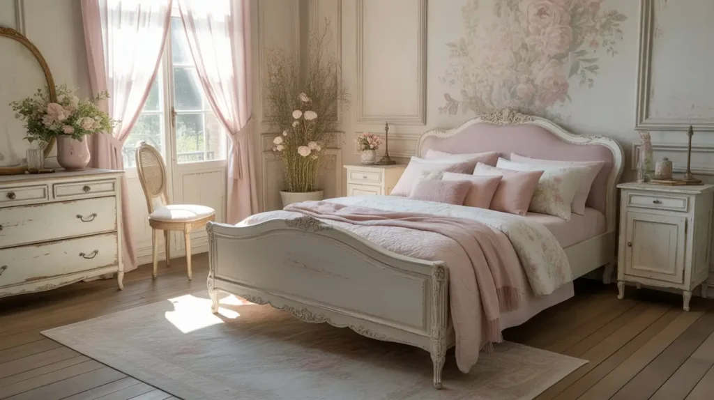 Okay, this is where things get dreamy. The romantic vintage French bedroom is basically what happens when you combine old-world charm with unapologetic femininity, and I’m here for it.