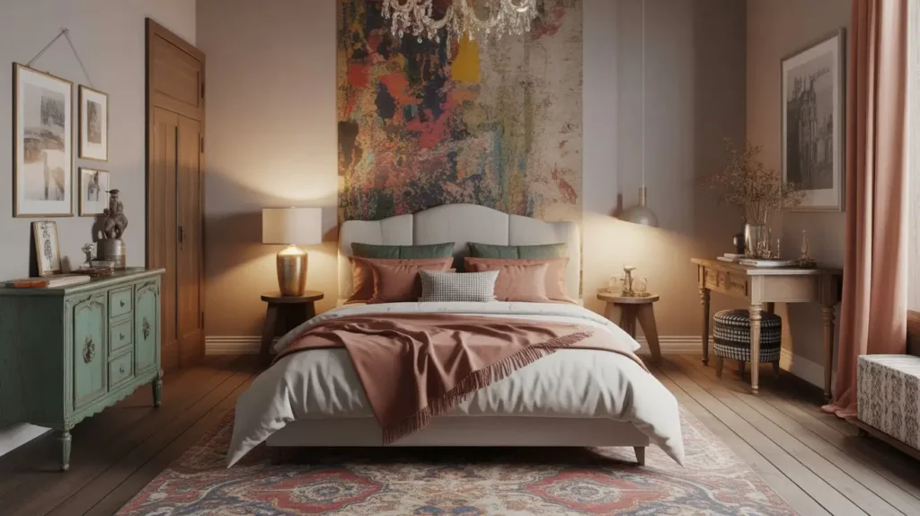 Last but definitely not least, let’s talk about the French eclectic mix bedroom—where the rules go out the window and your personality takes center stage.