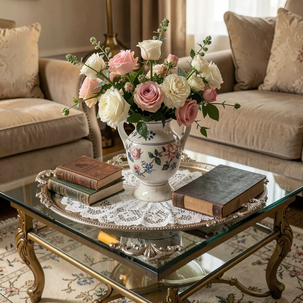 What makes this work on glass? The transparency means your few chosen items float in space, creating this gallery-like presentation. Your coffee table becomes less furniture and more meditation space. My anxiety levels literally dropped after embracing this style (though that might also be because I stopped stepping on hidden toys under table clutter).