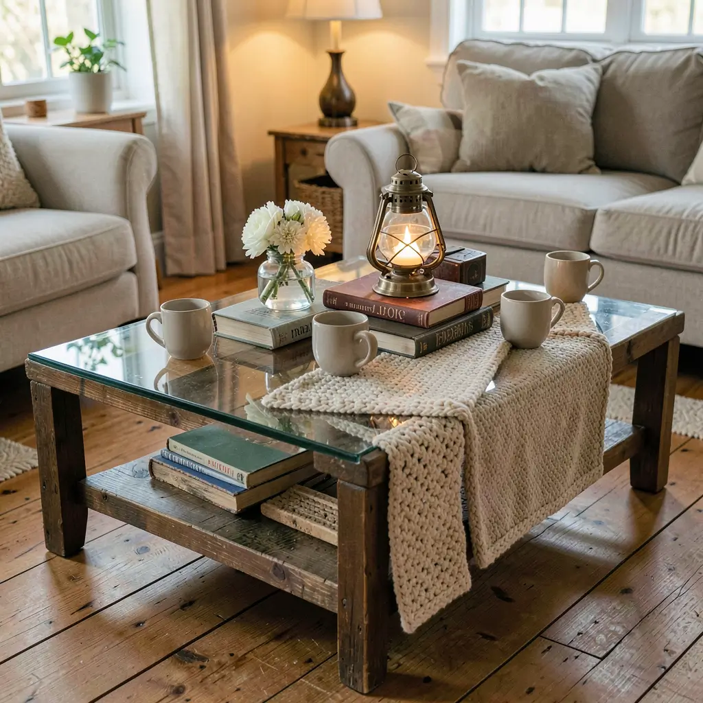10 Cozy Glass Coffee Table Decor Ideas for Living Rooms