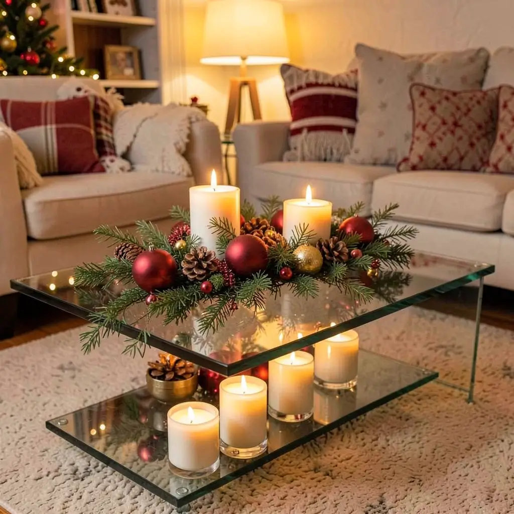 Glass tables make seasonal decorating feel fresh rather than forced. The transparency keeps holiday decor from overwhelming your living room while still letting you go all-out festive.