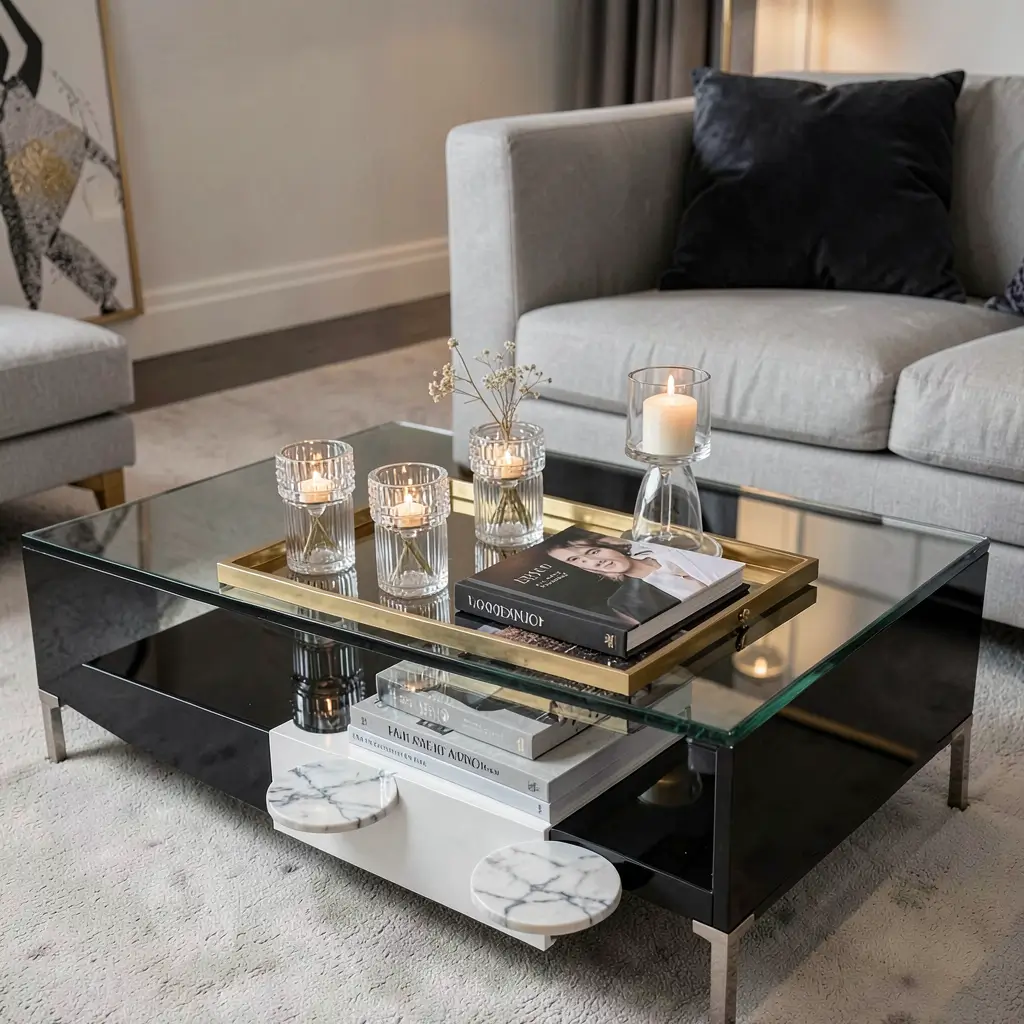 Your glass coffee table should enhance your living room, not dominate it. Make it beautiful, keep it functional, and definitely invest in good glass cleaner. Because let’s be honest – no matter how perfectly you style it, someone’s going to put their feet up there eventually. At least with glass, you’ll see it coming!