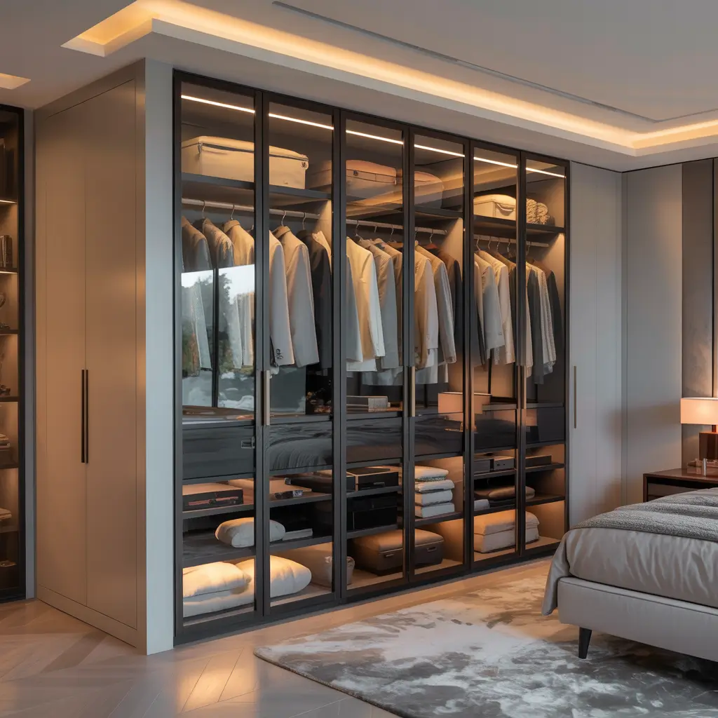 Industrial design isn’t going anywhere. The raw, honest aesthetic of exposed materials and functional hardware has serious staying power. Industrial glass wardrobes with metal frames embrace this aesthetic beautifully, creating wardrobes that feel like art installations.
