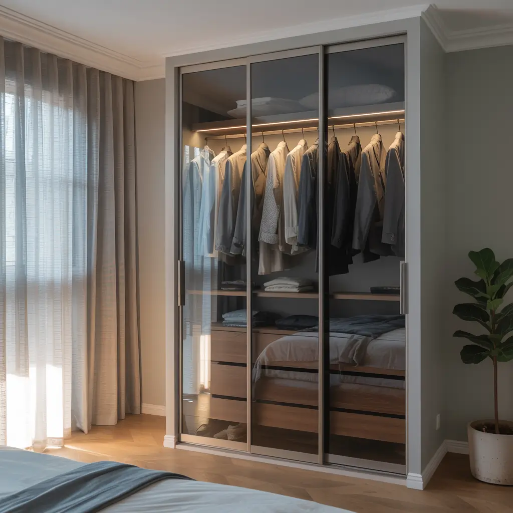 Compact doesn’t mean compromising on style or functionality. Modern compact glass wardrobes use vertical space efficiently, extending toward the ceiling to maximize storage capacity. Sliding mechanisms save floor space, and glass construction keeps things feeling open rather than cramped.