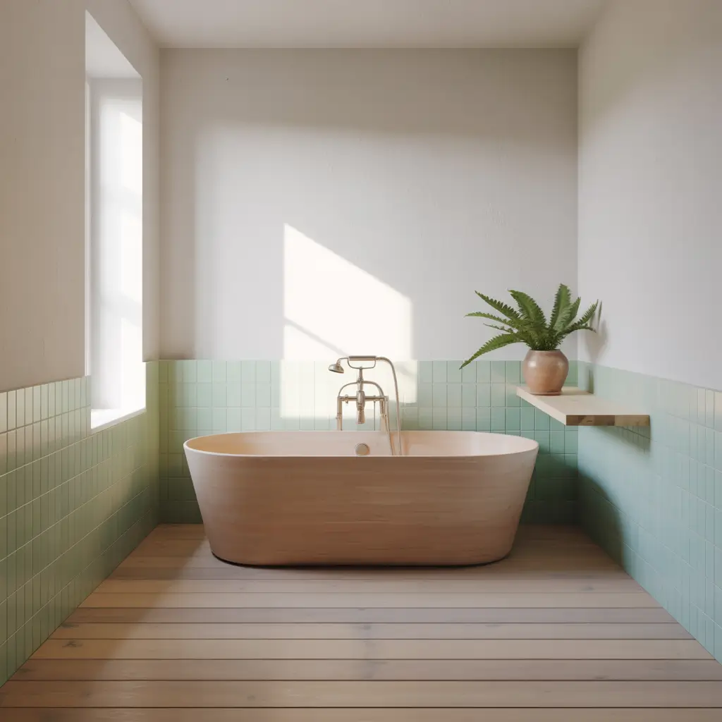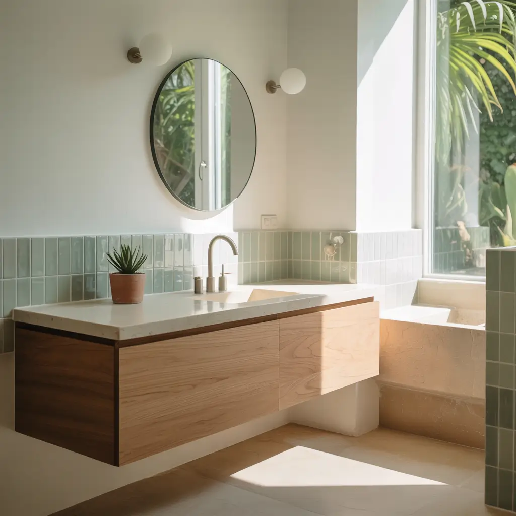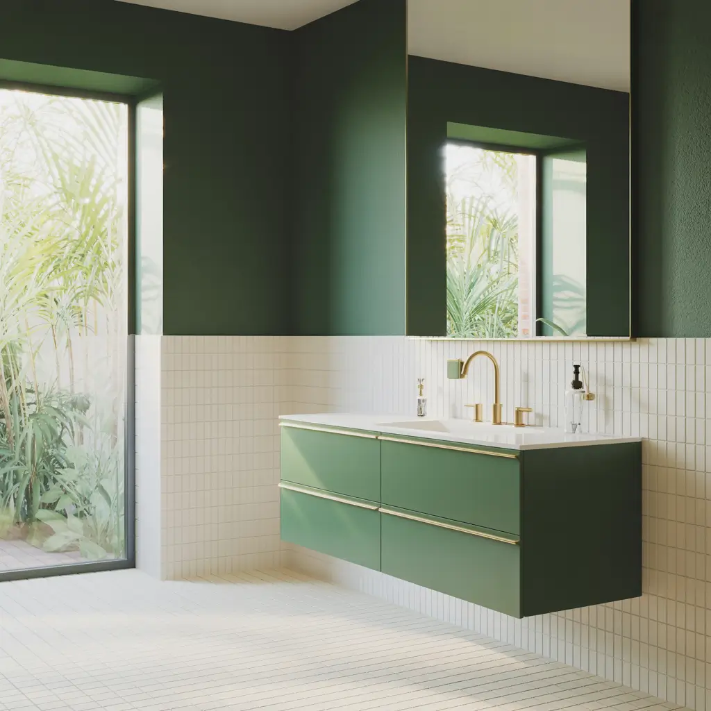 - One statement green element (vanity, accent wall, or large plant)