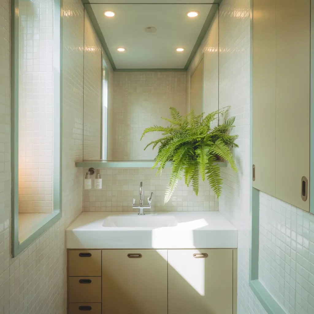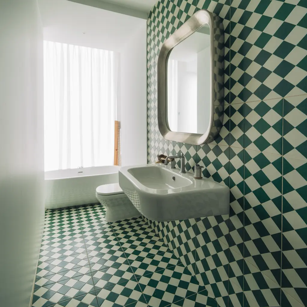The trick with patterns in tight quarters? Use them strategically. Don’t cover every surface, or you’ll create visual chaos. I used a bold green and white geometric tile on my floor and kept walls simple white. The floor became an artwork that drew the eye down, actually making the ceiling feel higher.