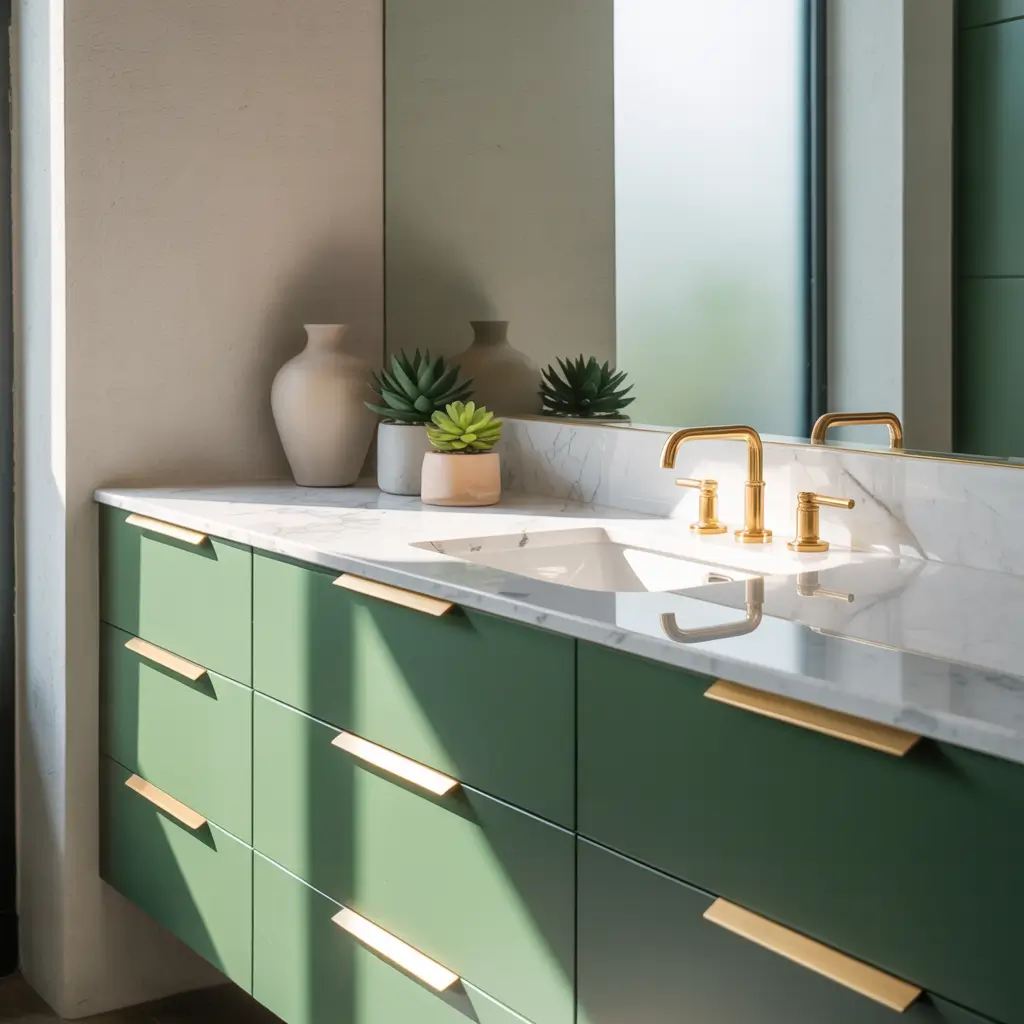 The modern aesthetic also means embracing negative space. Don’t fill every corner. Let the gold fixtures be jewelry that stands out against your green and white canvas.