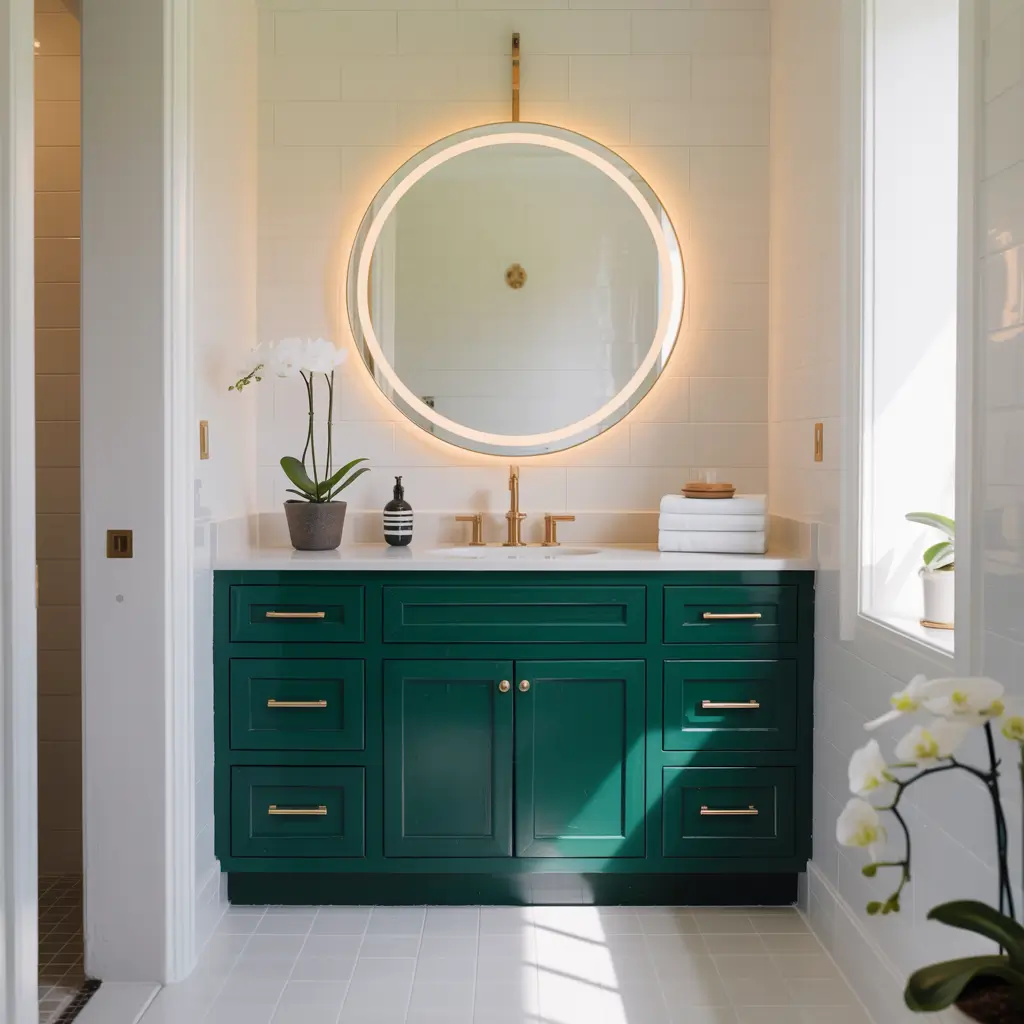 I visited my friend’s newly renovated bathroom last month, and her emerald green vanity literally stopped me in my tracks. Against white subway tiles and marble countertops, that rich, jewel-toned cabinet looked like a million bucks (even though she got it for way less).