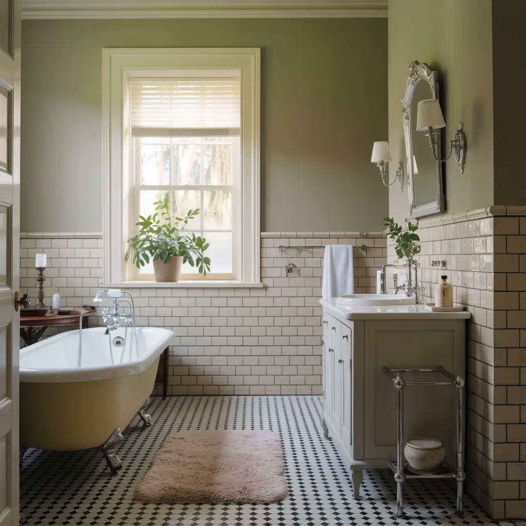 You can adjust the ratio based on your preference. Want more drama? Go heavier on the green. Want something subtle? Use green as an accent through towels, a rug, or a single wall. The flexibility of this combo is exactly why it’s stood the test of time.