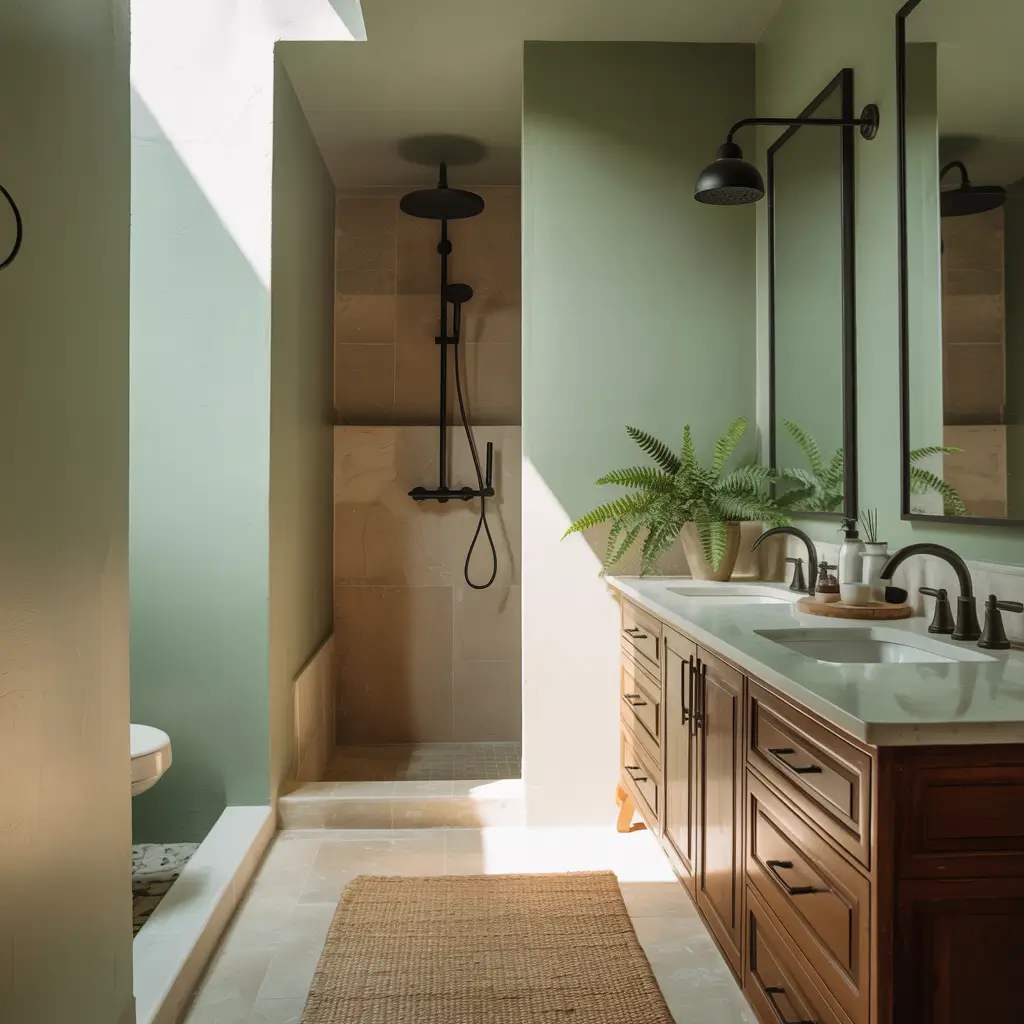 I’m a huge fan of minimalism, but I’ve seen too many minimalist bathrooms that feel cold and clinical. Olive green solves that problem beautifully. It gives you that clean, uncluttered aesthetic while adding a natural, grounding element.