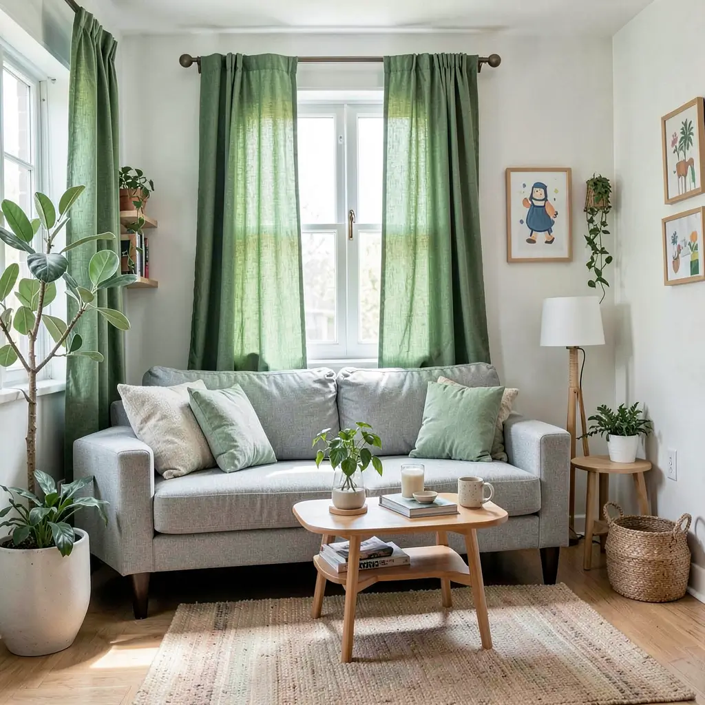 The minimalist approach demands quality over quantity. One set of perfectly hung eucalyptus green curtains beats five mediocre decorative elements every time. My current setup features pale sage curtains against white walls, and the subtle color provides just enough interest without disrupting the zen.