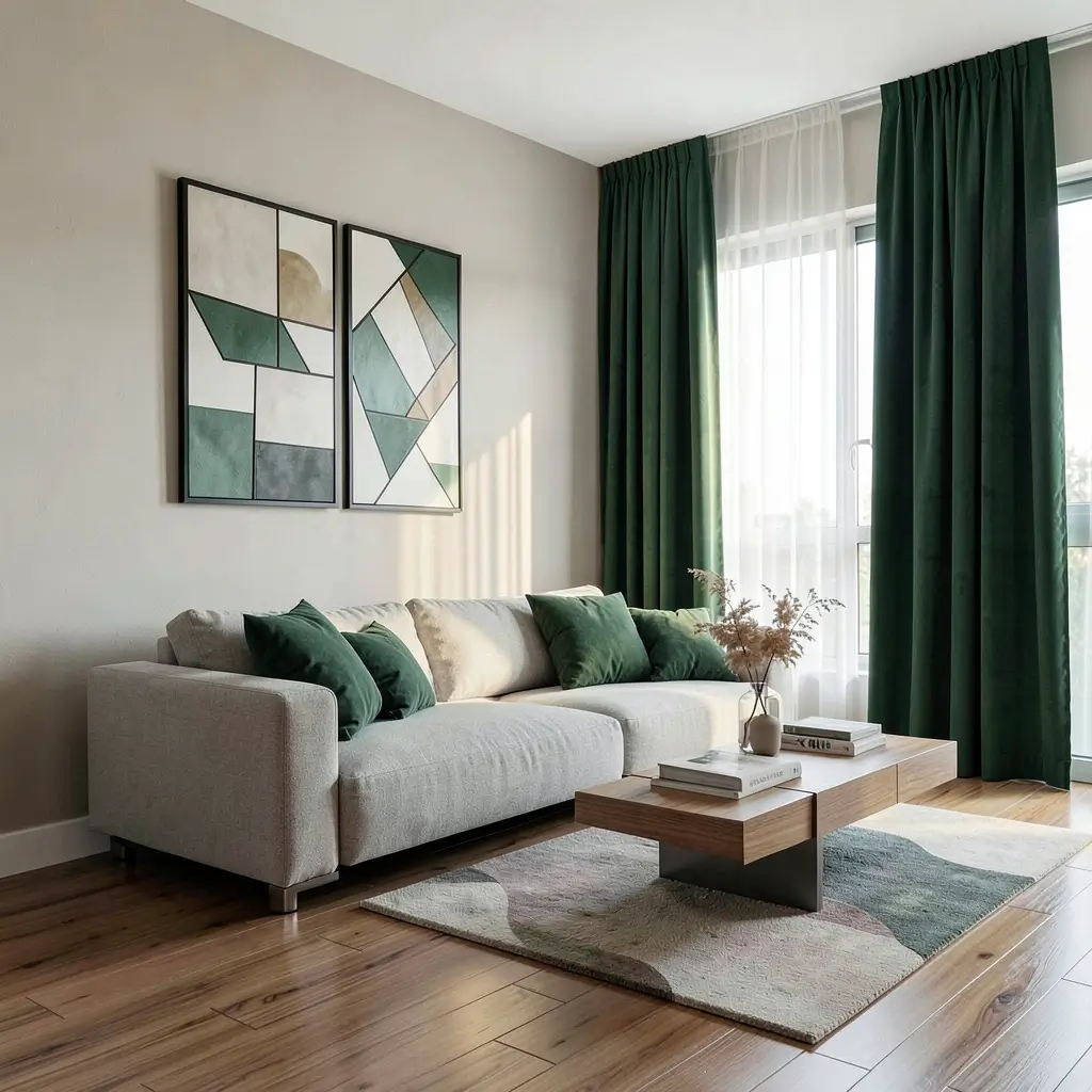 Modern green curtains bring nature into contemporary spaces without the maintenance of actual plants. My geometric-patterned sage curtains look like abstract art that happens to block light, which is exactly the modern aesthetic I was after.