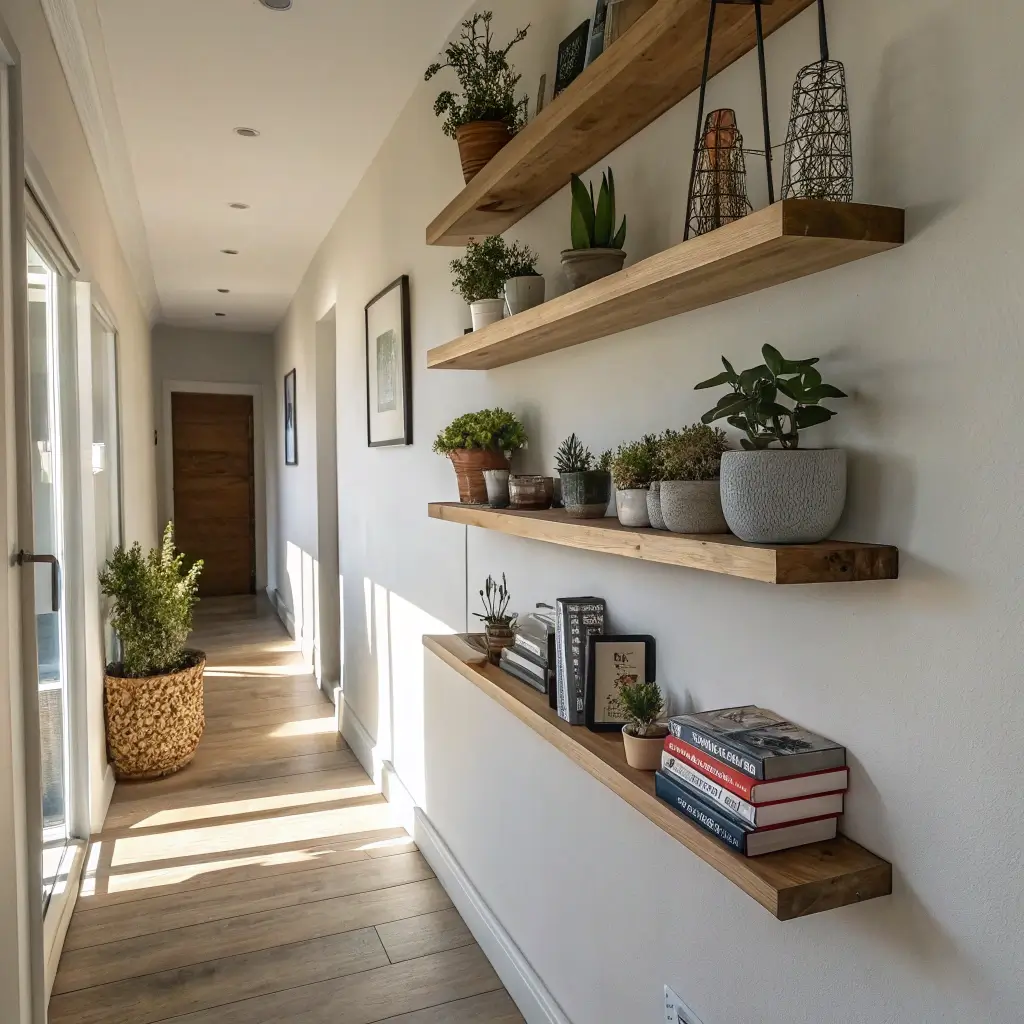 You want to stagger those shelves, not line them up like soldiers. I learned this after my first attempt looked like a boring library stack. Asymmetry is your friend here, especially in narrow hallways where you need visual interest.
