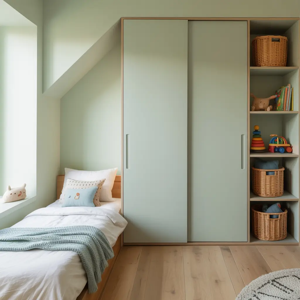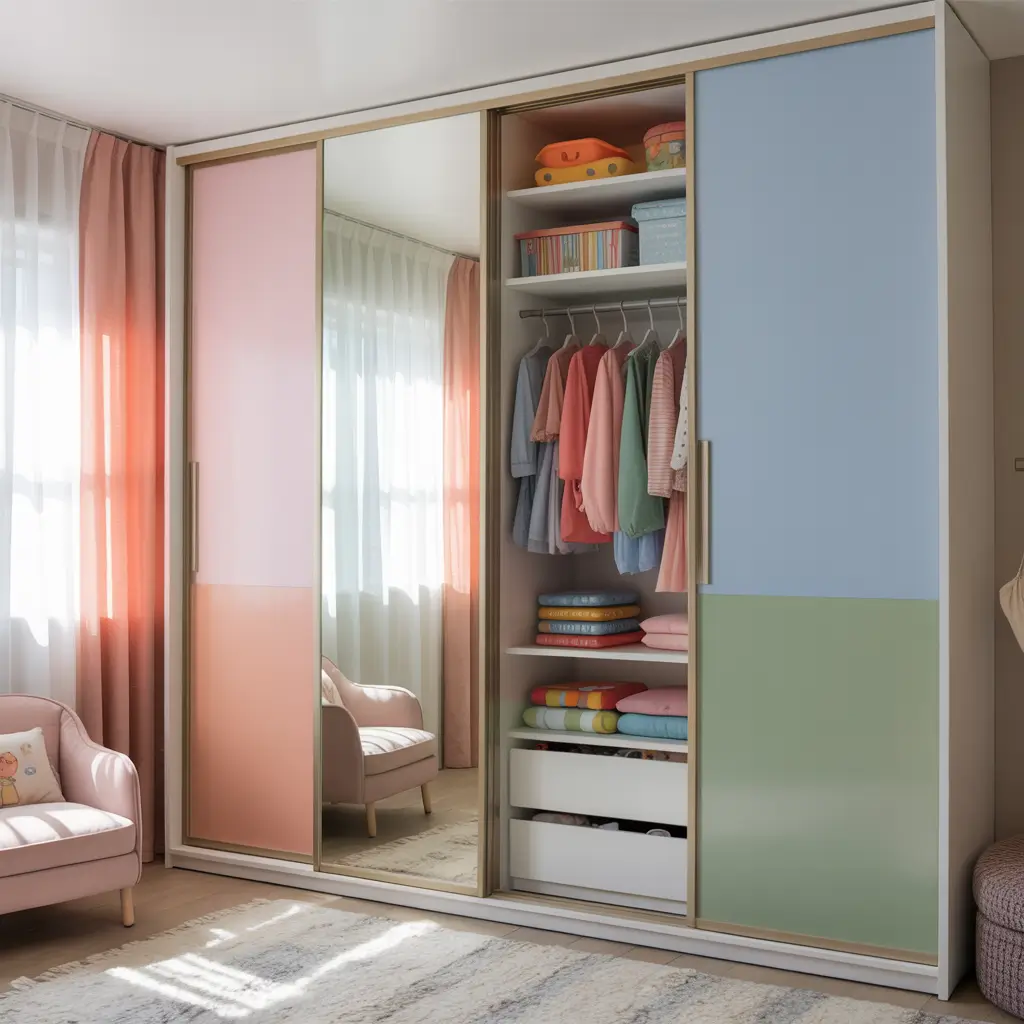 1. Space-Saving Sliding Wardrobe for Kids Room