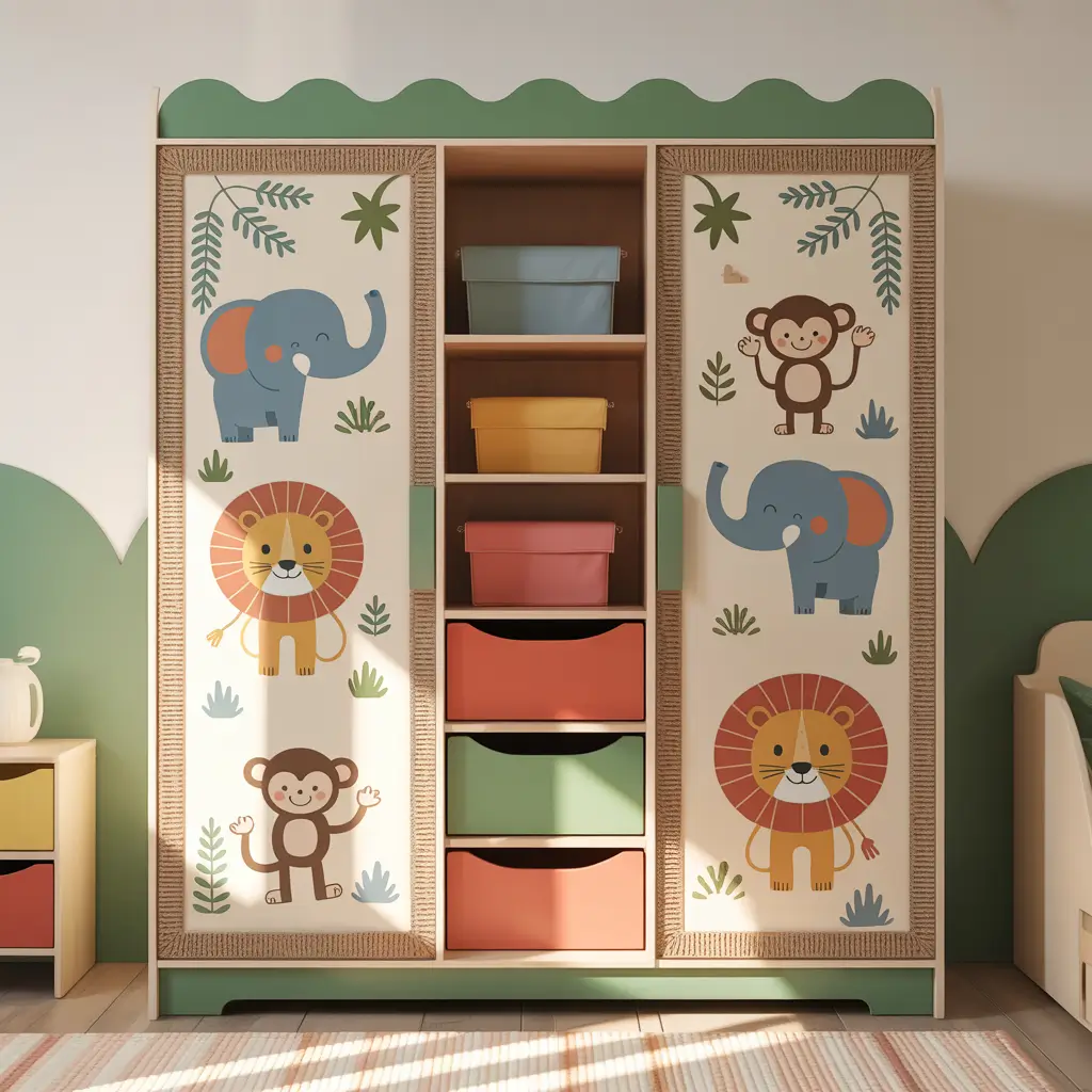 My son’s room has a wardrobe in soft sage green with constellation handles. It’s themed but sophisticated enough that he won’t hate it when he’s 14. That’s the sweet spot you’re aiming for.