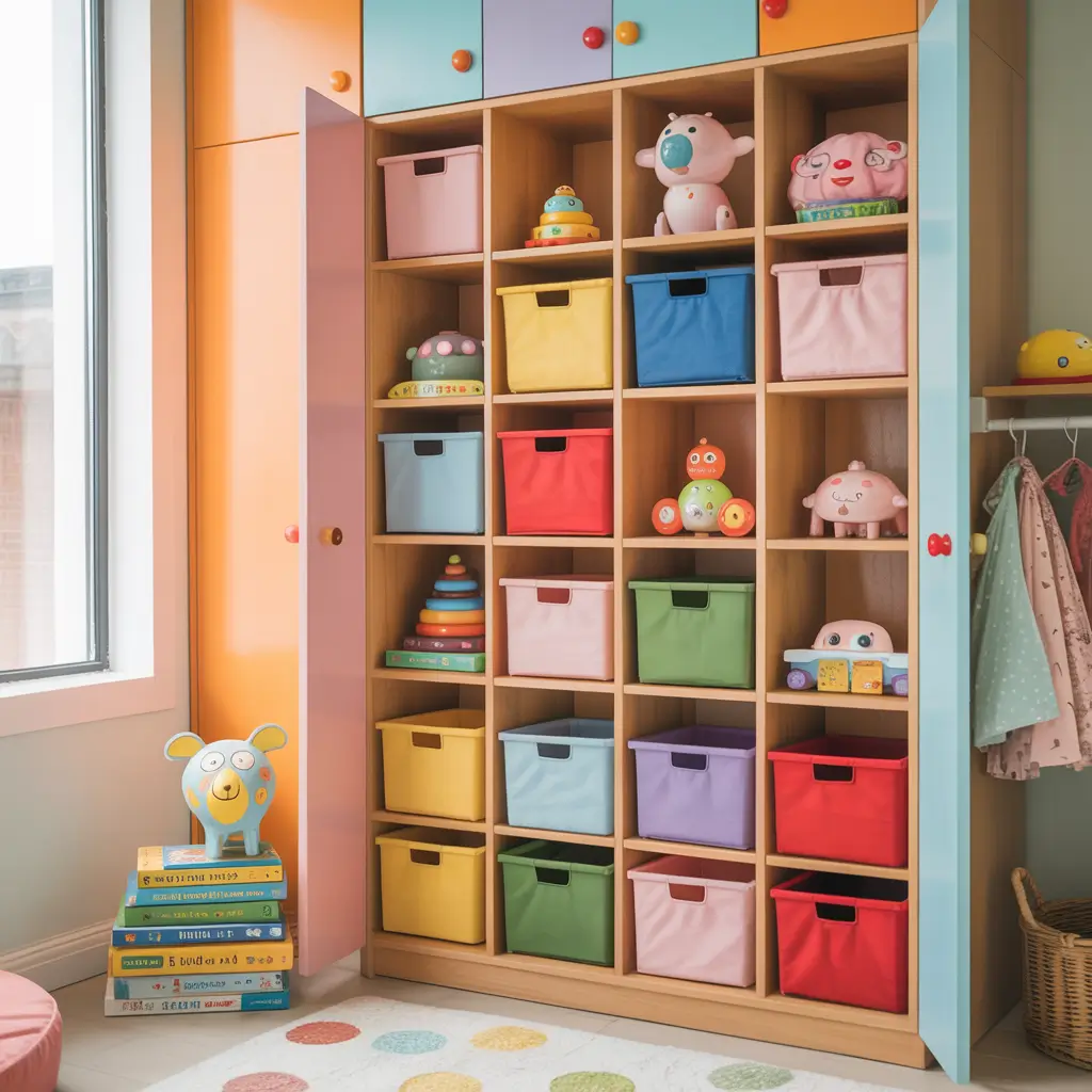 I designed my daughter’s wardrobe with closed sections for clothes and open cubbies for books and toys. She can actually see what she has, which means she plays with more of her toys instead of forgetting they exist.