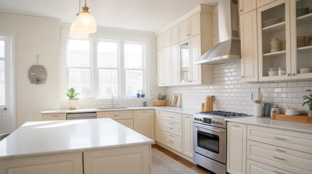 The key here is layering different shades of white. Pure white, cream, ivory, off-white—they’re all different, and when you combine them thoughtfully, you create depth instead of flatness. I once saw a kitchen with white shaker cabinets, white marble backsplash, and white quartz counters, and it was anything but boring because each element had different undertones and textures.