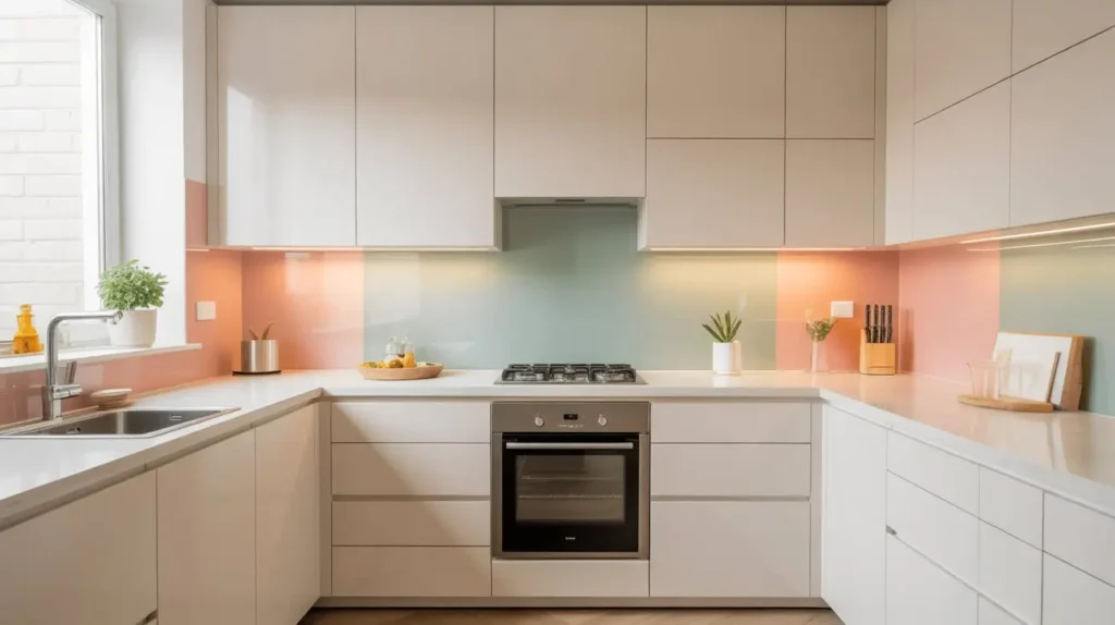 Back-painted glass creates this seamless, reflective surface that makes small kitchens feel larger and brighter. You can choose literally any color—I’ve seen everything from soft sage green to bold navy to pure white that creates this beautiful monochromatic look with white cabinets.