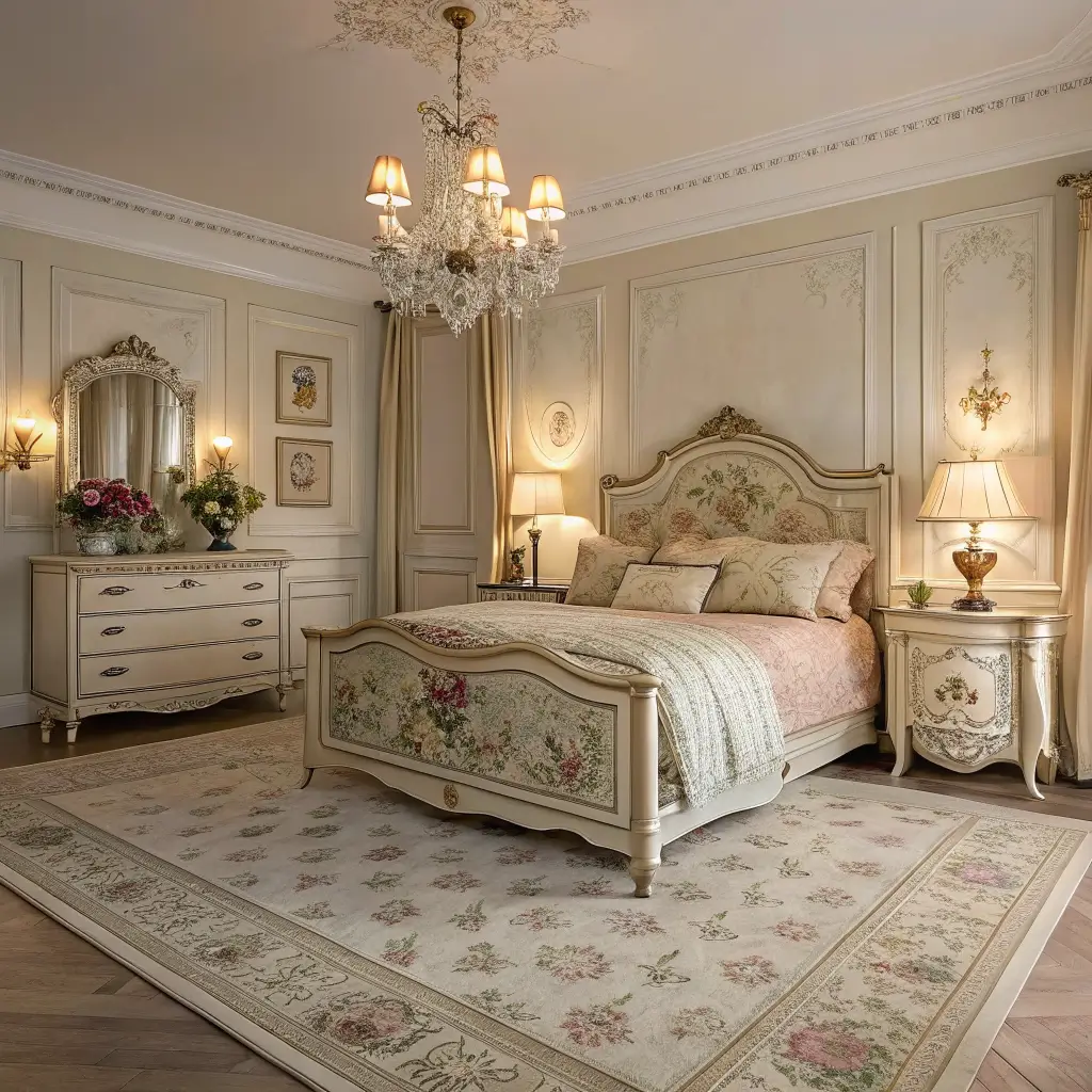 - Floral or toile patterns: Use these in bedding, curtains, or wallpaper to reinforce the vintage aesthetic.