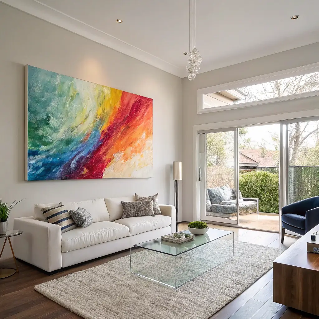 I finally invested in a 60×80 inch abstract piece, and the transformation was instant. The room suddenly had a focal point, conversations had a natural starting point, and my living room stopped feeling like an empty warehouse. Abstract works particularly well because it doesn’t need to be “readable” from across the room – it’s about color, movement, and presence.