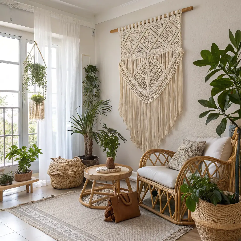 Macramé isn’t just for plant hangers anymore. Large-scale macramé pieces add incredible texture and warmth to living rooms. My 5×7 foot macramé hanging is basically functional art – it’s beautiful and dampens sound from the street.