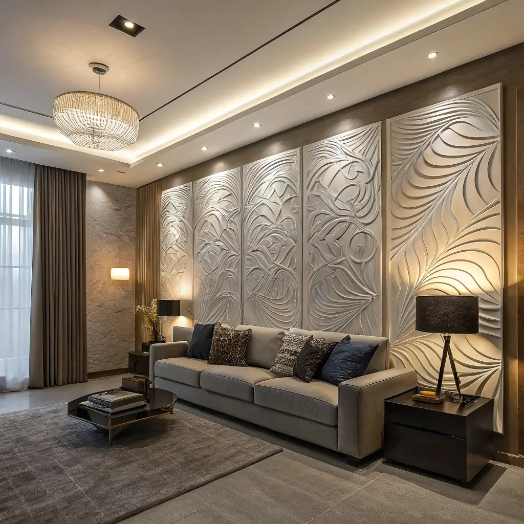 3D panels come in everything from PVC to real wood veneer. Your choice depends on budget, style, and how permanent you want the installation to be.