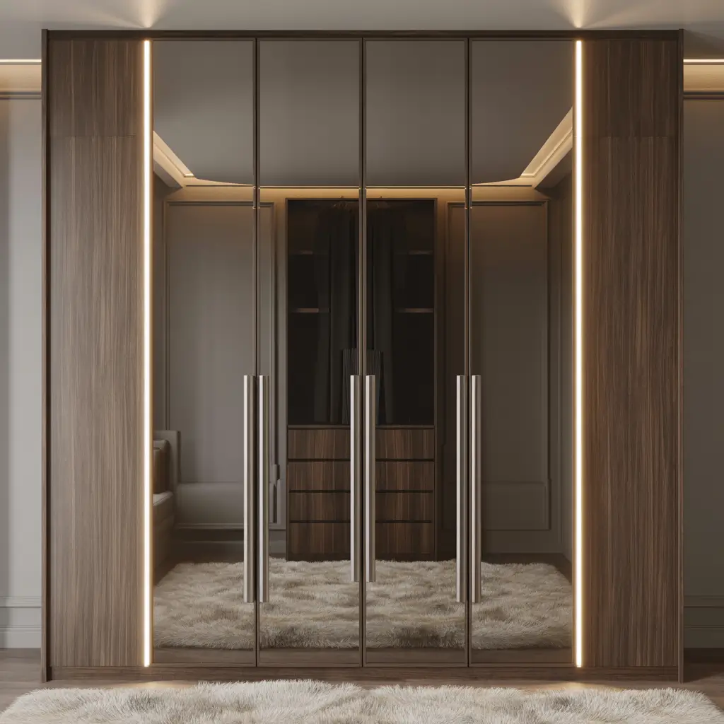 Wooden panel wardrobes bring this organic, timeless elegance that makes a room feel grounded and sophisticated. We’re talking walnut, oak, teak, or even exotic woods with gorgeous grain patterns that turn your storage into a statement piece. I’ve always been a sucker for vertical wood paneling because it draws the eye upward and makes ceilings look higher.