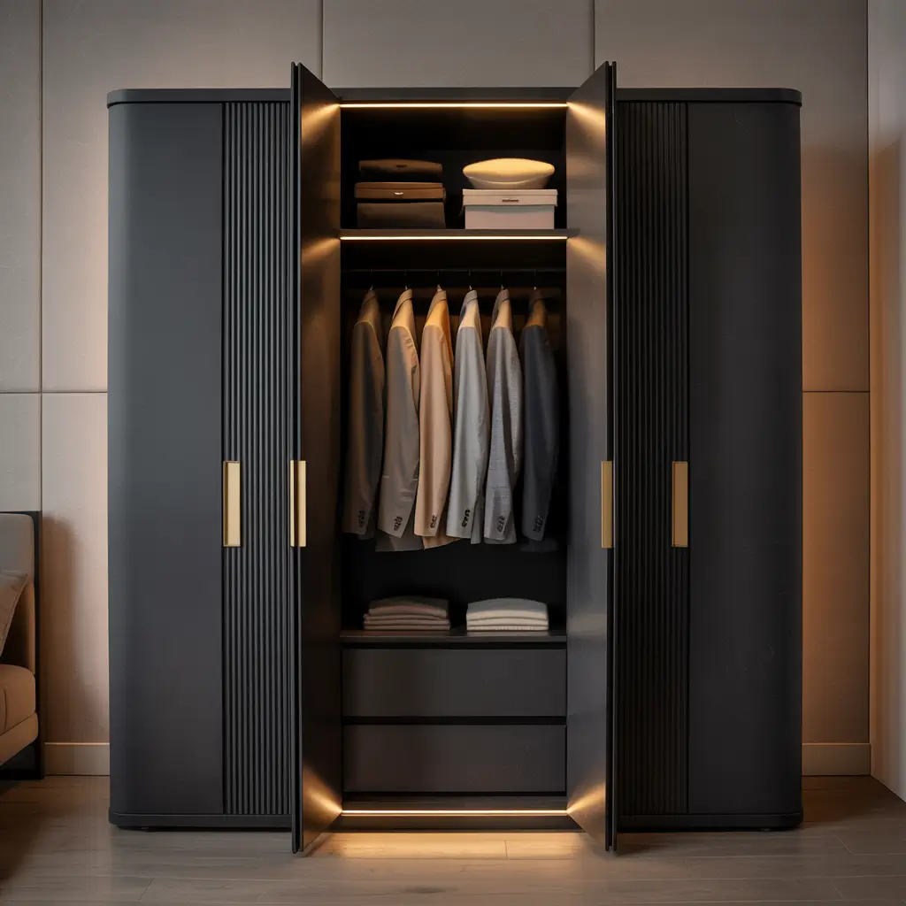 These wardrobes work particularly well in contemporary or mid-century modern bedrooms. The texture adds depth without overwhelming the space. Plus, wood ages beautifully—unlike some trendy materials that look dated after a few years.