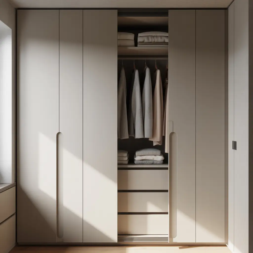 Unlike traditional hinged doors that need clearance space to open, sliding doors move parallel to the wardrobe. This means you can place furniture right up close without blocking access. I switched to sliding doors in my bedroom specifically because I wanted to fit a reading chair nearby—best decision ever.