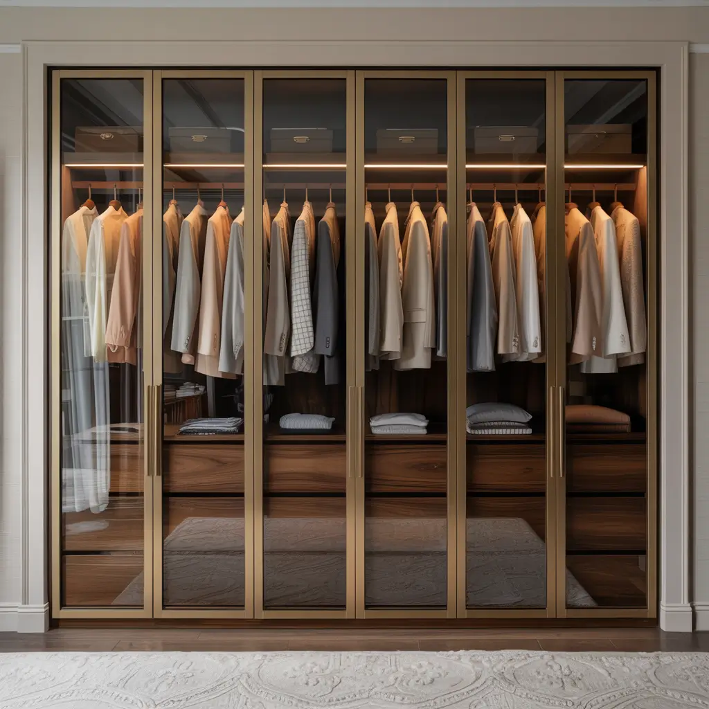 I’m not talking gaudy, over-the-top bling here. We’re talking subtle brushed gold handles, gold-framed glass panels, or delicate gold trim that catches the light just right. It’s that touch of glamour that elevates a wardrobe from “nice” to “absolutely stunning.”