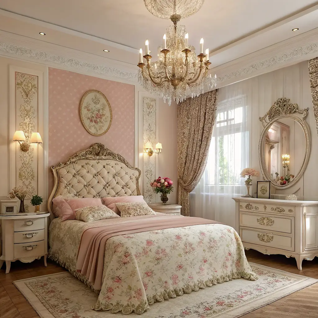 - Ornate furniture.ย A carved wooden bed frame, a vintage vanity with a gilded mirror, or an antique armoire instantly sets the tone.