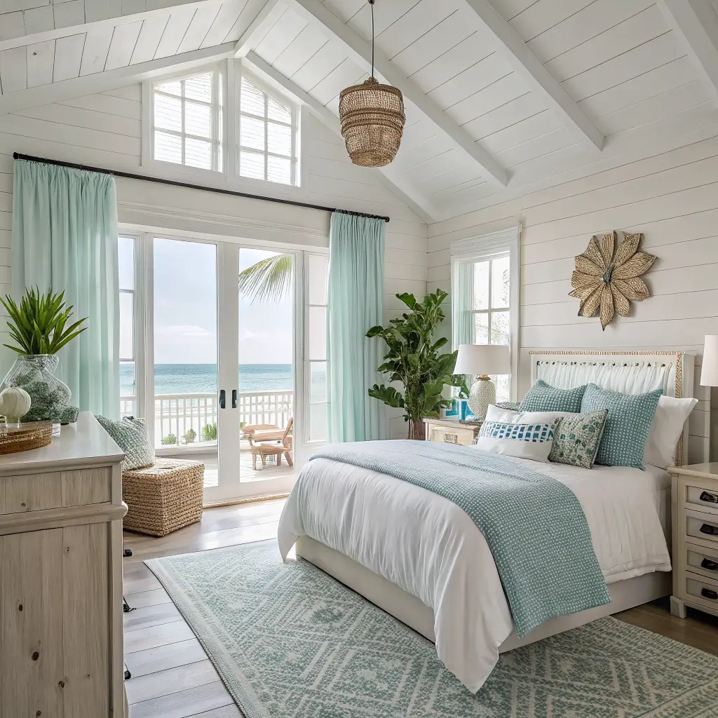 - Sheer, flowing curtains.ย White linen or cotton curtains that billow slightly in the breeze create instant coastal romance.