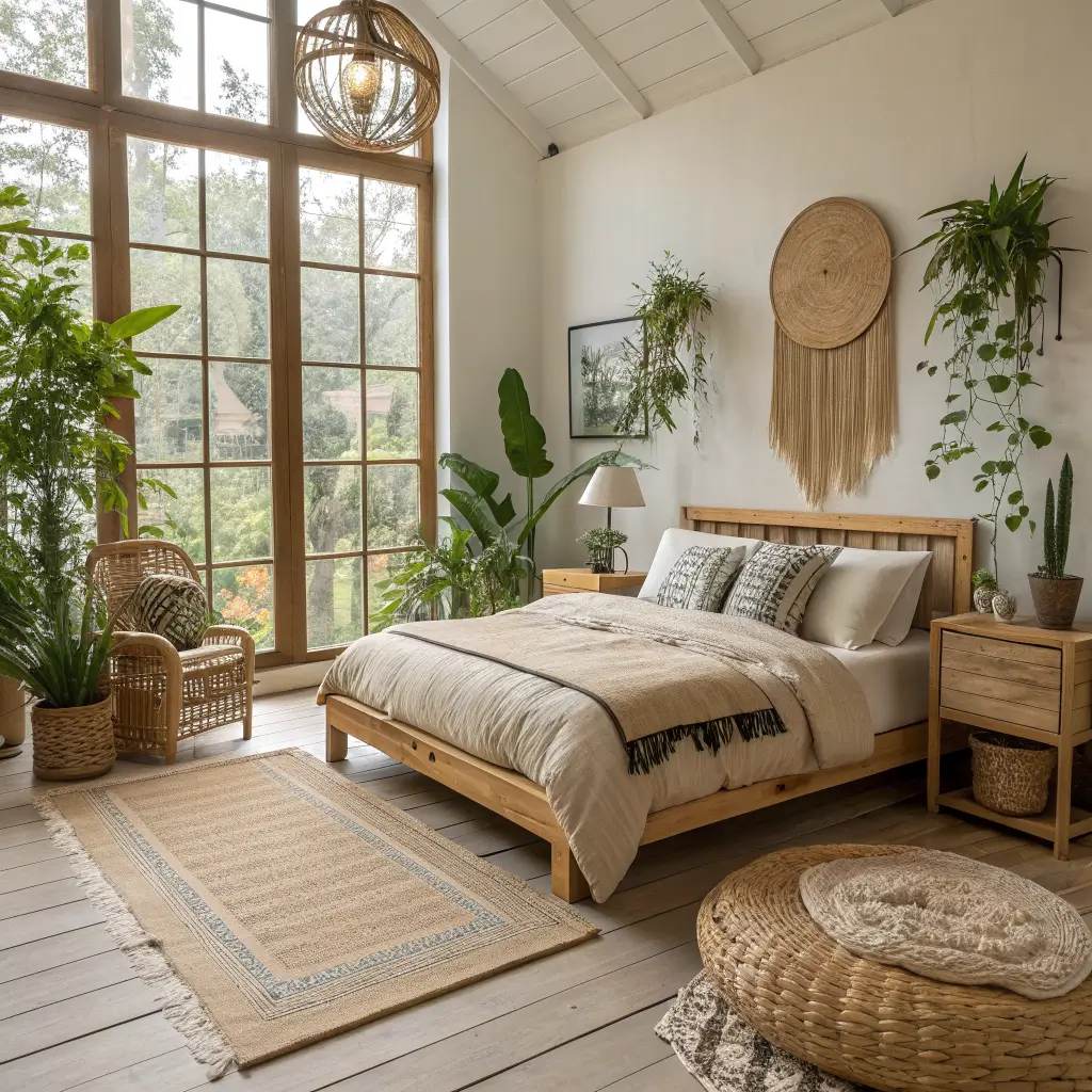 To create your own boho-inspired master bedroom, focus on these essentials: