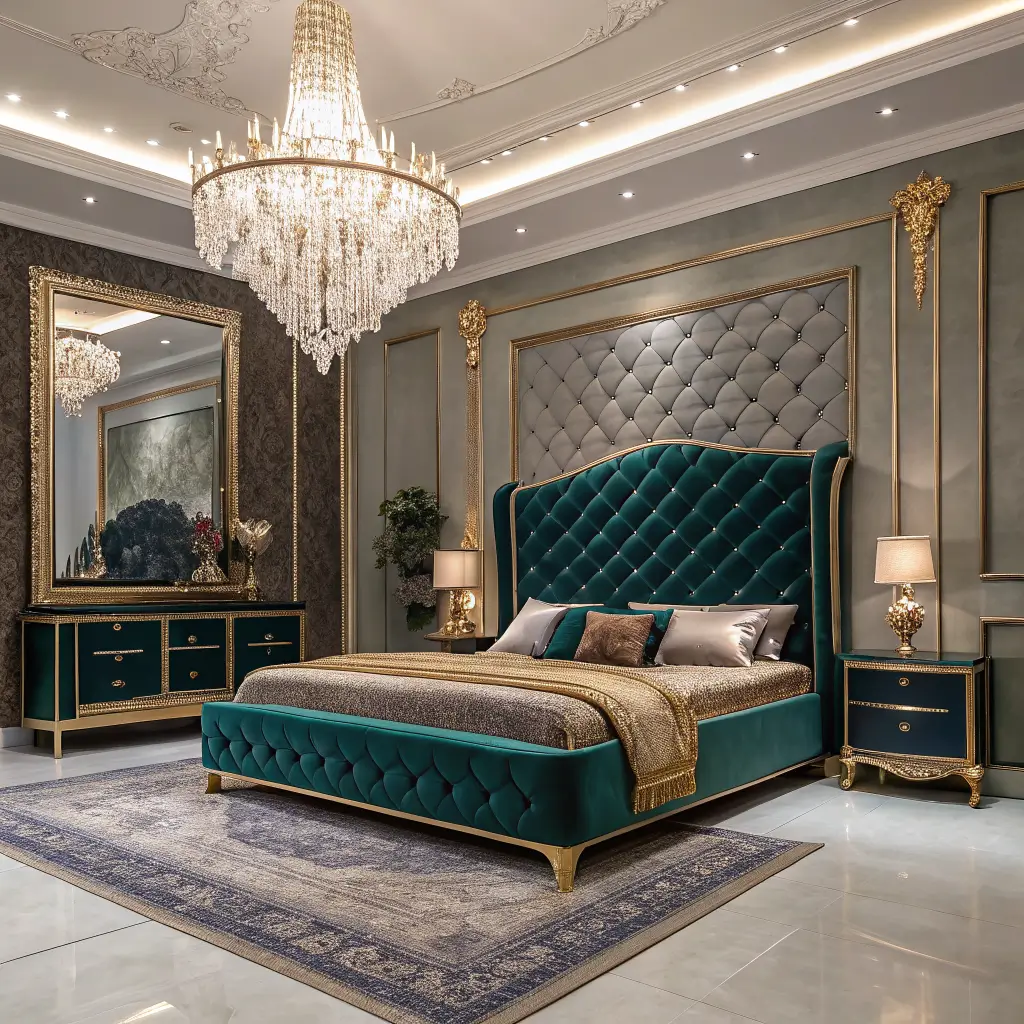 - Invest in one show-stopping pieceโlike a tufted velvet headboard or a crystal chandelierโand let everything else play a supporting role