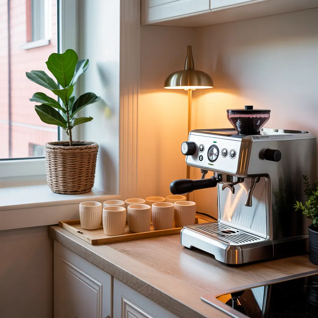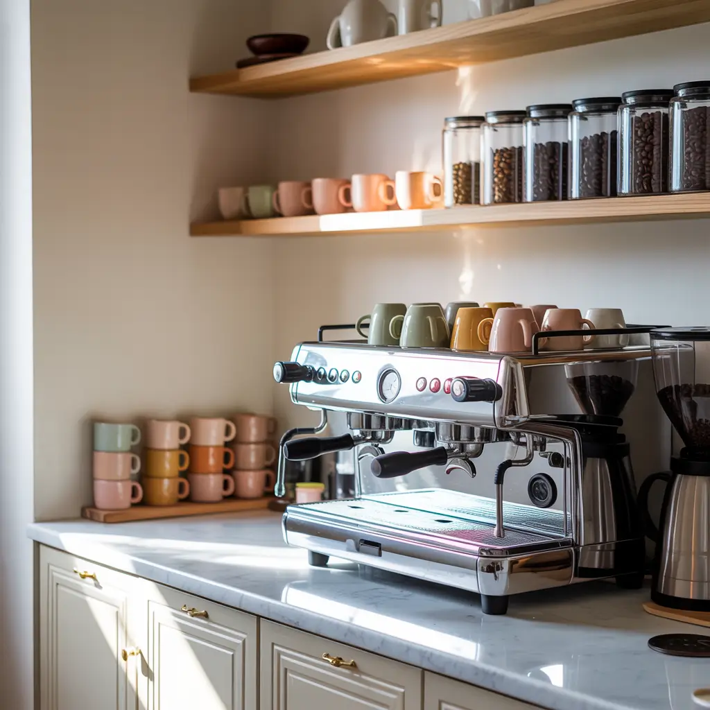 My minimalist phase lasted about three months before I started adding decorative elements back in, but I learned a lot about what I actually need versus what just looks cute. Your minimalist setup might include just an espresso machine, a grinder, and two cups. Everything else? Stored away until needed.
