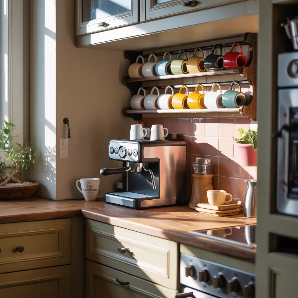 This setup is perfect for people who want their coffee stuff completely hidden when not in use. Your kitchen looks clean and minimal, but you’ve still got a fully functional coffee station ready to go. IMO, it’s one of the cleverest space-saving solutions out there.