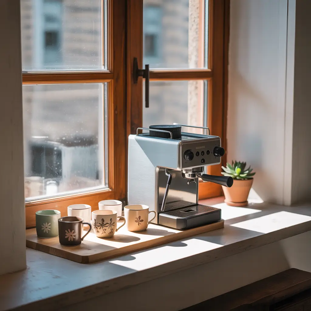 Last but definitely not least, let’s talk about window ledges. If you’ve got a deep window sill—maybe in your kitchen or even a sunny corner of your living room—you can turn it into a tiny coffee spot.
