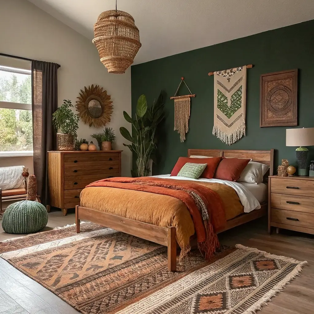 These colors still carry that warm, earthy boho energy, but they anchor the room in moodiness and depth.