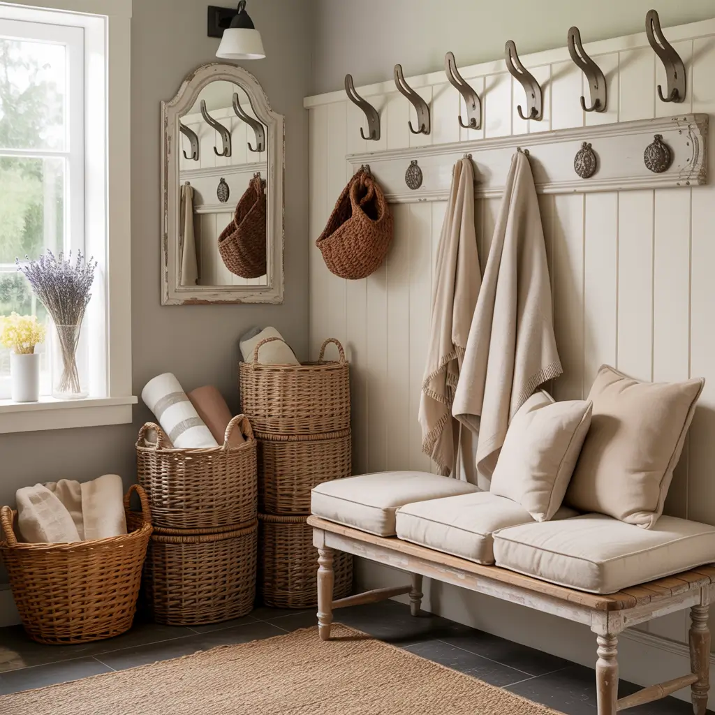 1. Cozy Farmhouse Mudroom Entryway
