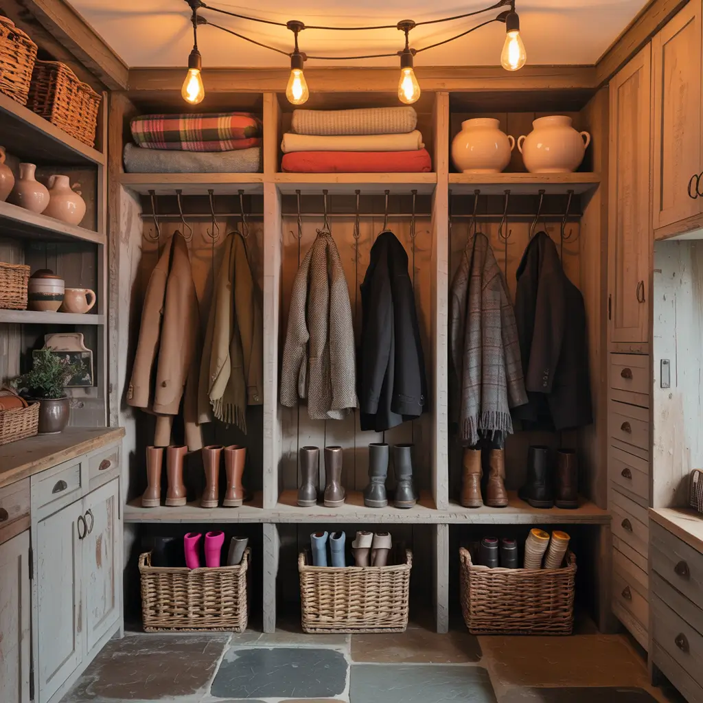 Wood brings warmth to any space, but in a mudroom, it serves double duty by being both beautiful and incredibly durable. Rustic wooden storage solutions can handle the daily abuse that mudrooms typically endure while looking better with age.